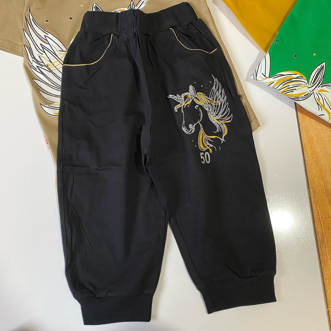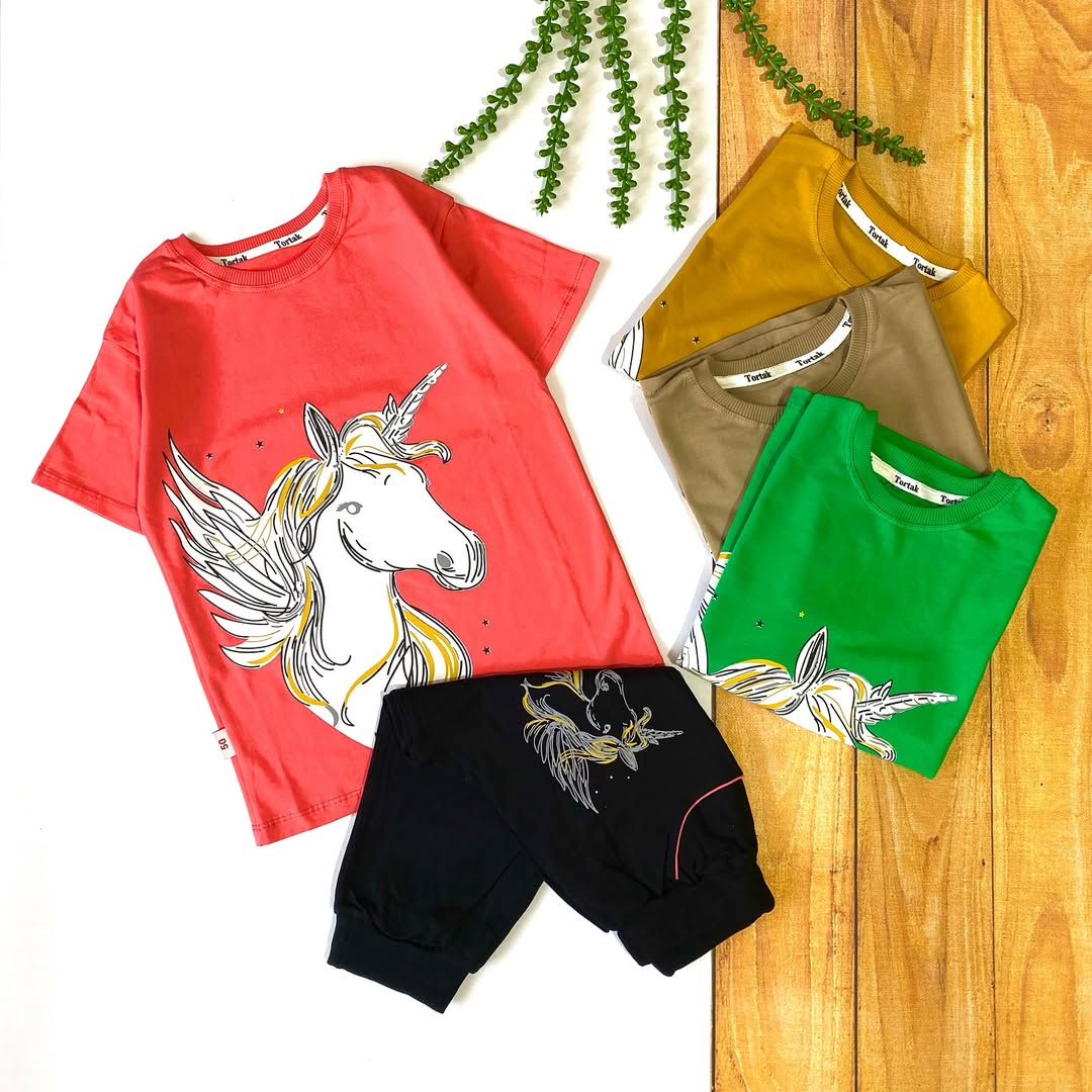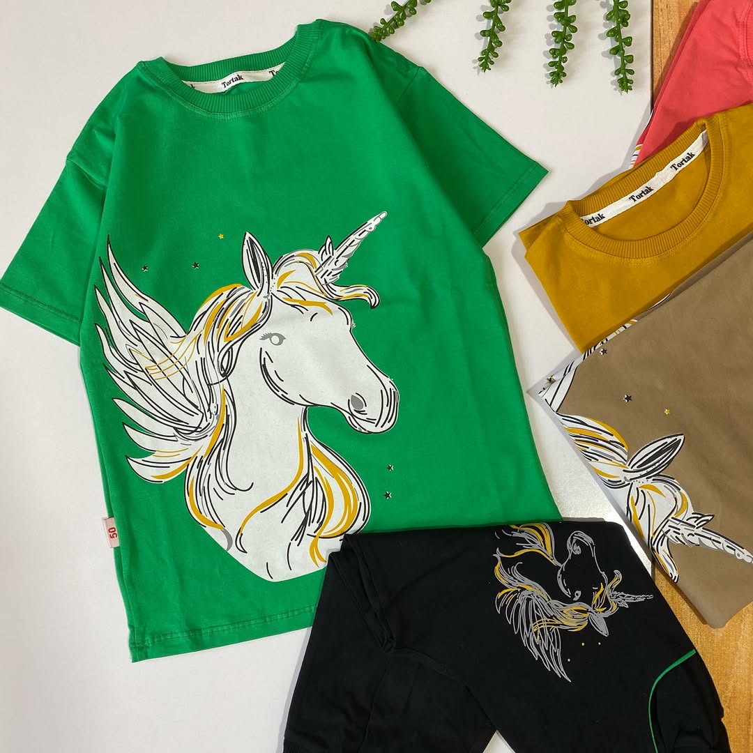 ست تیشرت و شلوارک دخترانه نخ پنبه مدل تک شاخ تورتک
