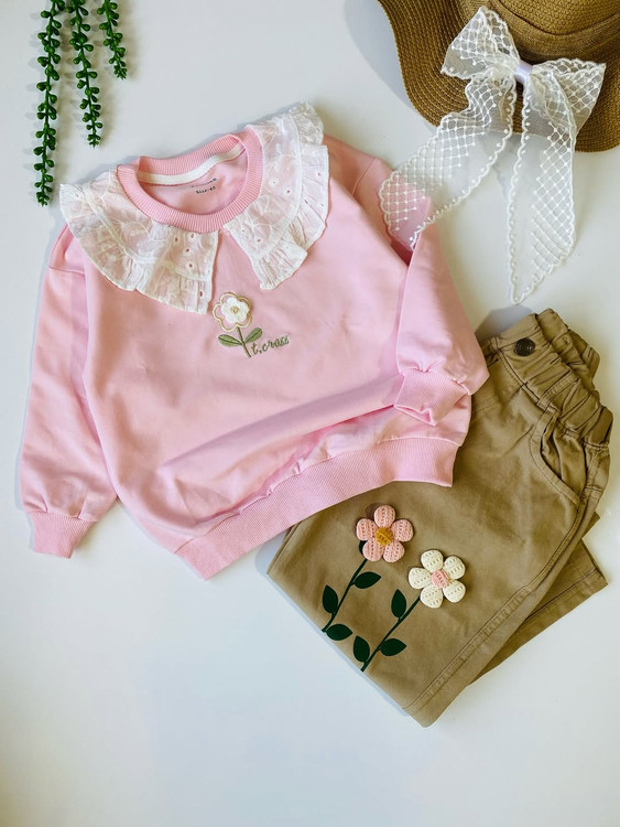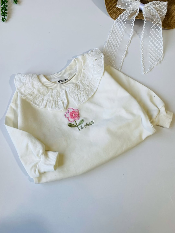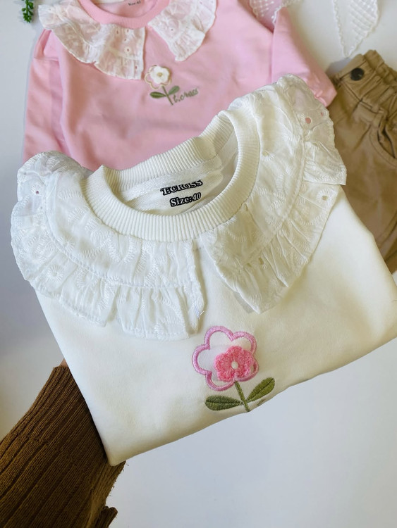 این بلوز دخترانه قشنگ جنس دورس عالیه و یه استايل شيك به گل دخترانتون میده. با يقه خامه دوزي قشنگ و گلدوزی خوشگل برجسته